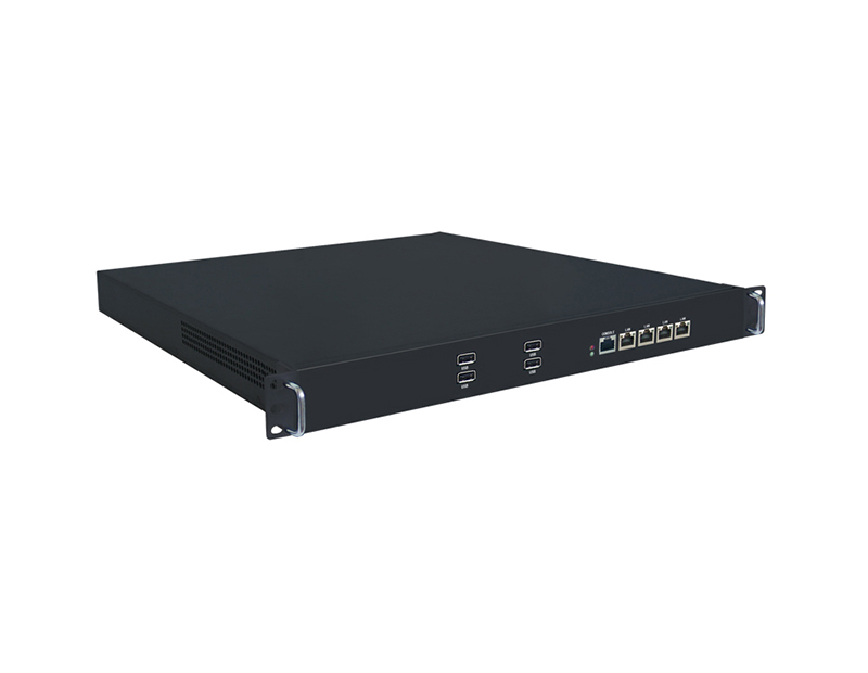 1U 4千兆网络安全准系统,采用 Intel 82574L芯片,支持4个千兆以太网,1个VGA接口,6个USB2.0接口,1个Console,1个RS-232(DB9)
